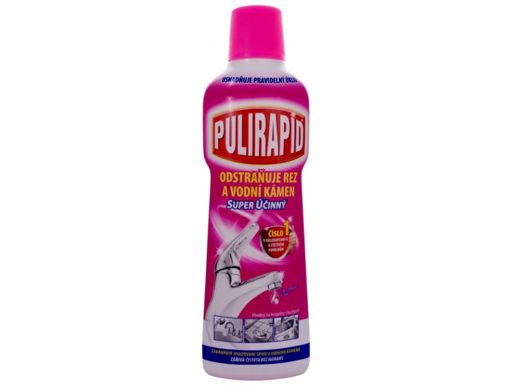 PULIRAPID S PŘÍRODNÍM OCTEM - legendární čistič pro kuchyně a koupelny. Snadno se vypořádá s vodním kamenem, rzí, zbytky mýdla i dalšími nečistotami. Kromě účinných kyselin obsahuje i přírodní ocet, díky kterému zůstane povrch i nadále třpytivý. Zneškodňuje nežádoucí pachy a čistí do vysokého lesku bez poškrábání nerezové dřezy, kohoutky, keramické obklady, dlažby, vany, umyvadla apod.