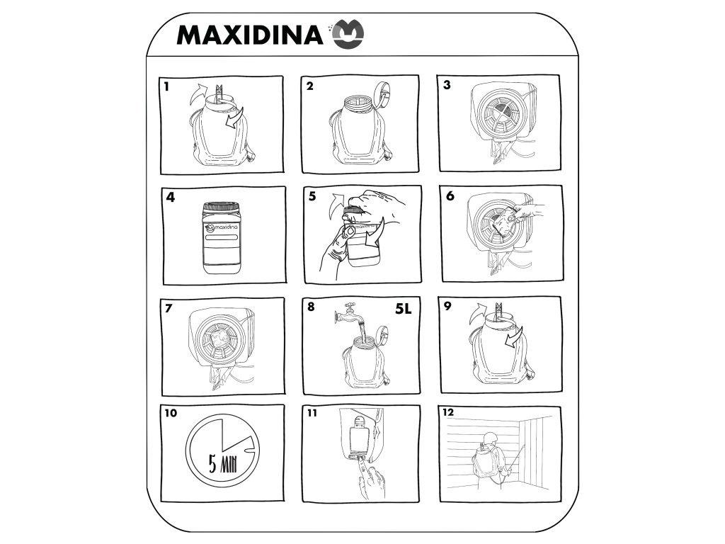 Samorozpustný sáček vložte přímo do dávkovače. Poté přidejte čistou vodou v poměru 1 sáček na 8 litrů. Dávkovač natlakujte pro dosažení optimální mlhy. Aplikovaný roztok není potřeba oplachovat.