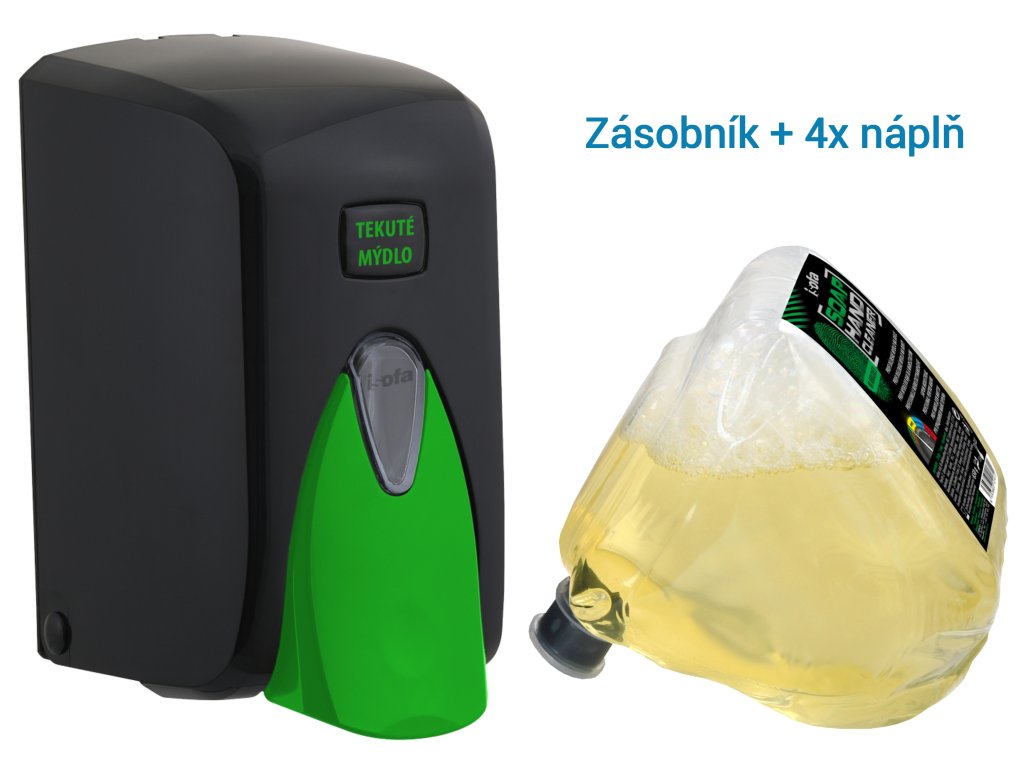 ISOFA SOAP Profi dílenské mýdlo na ruce 4 x 650g, TEAM - sada se zásobníkem (zelená)