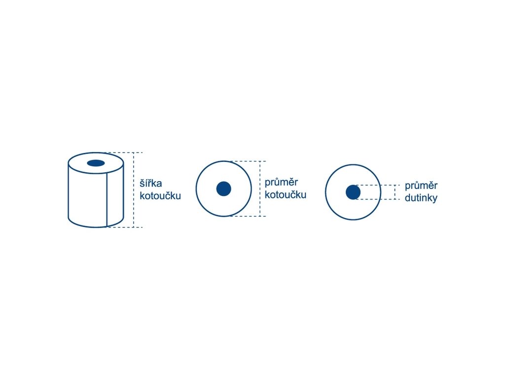kotoučky z termocitlivého papíru vyhovující do všech druhů pokladen elektronické evidence tržeb EET, rozměry: šířka pásky / průměr pásky / průměr dutinky, balení 5 ks