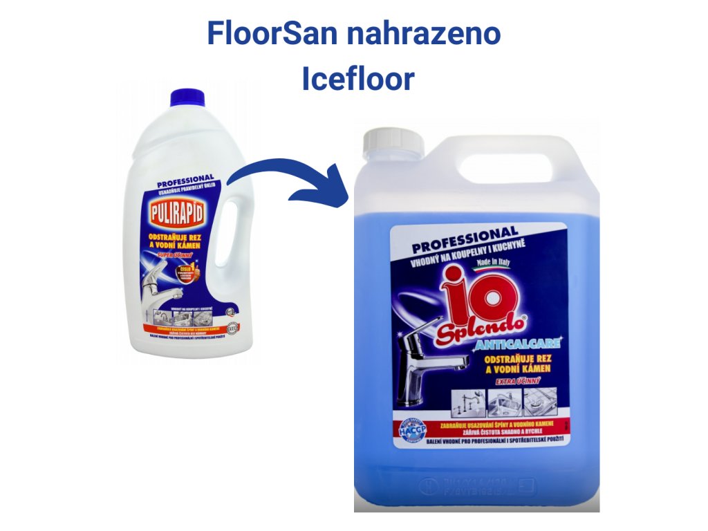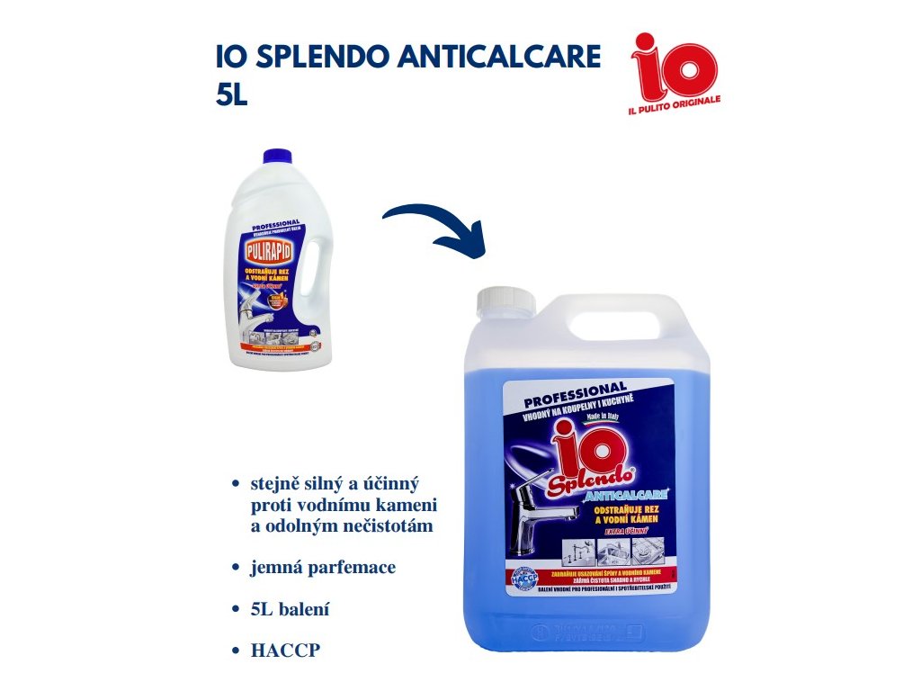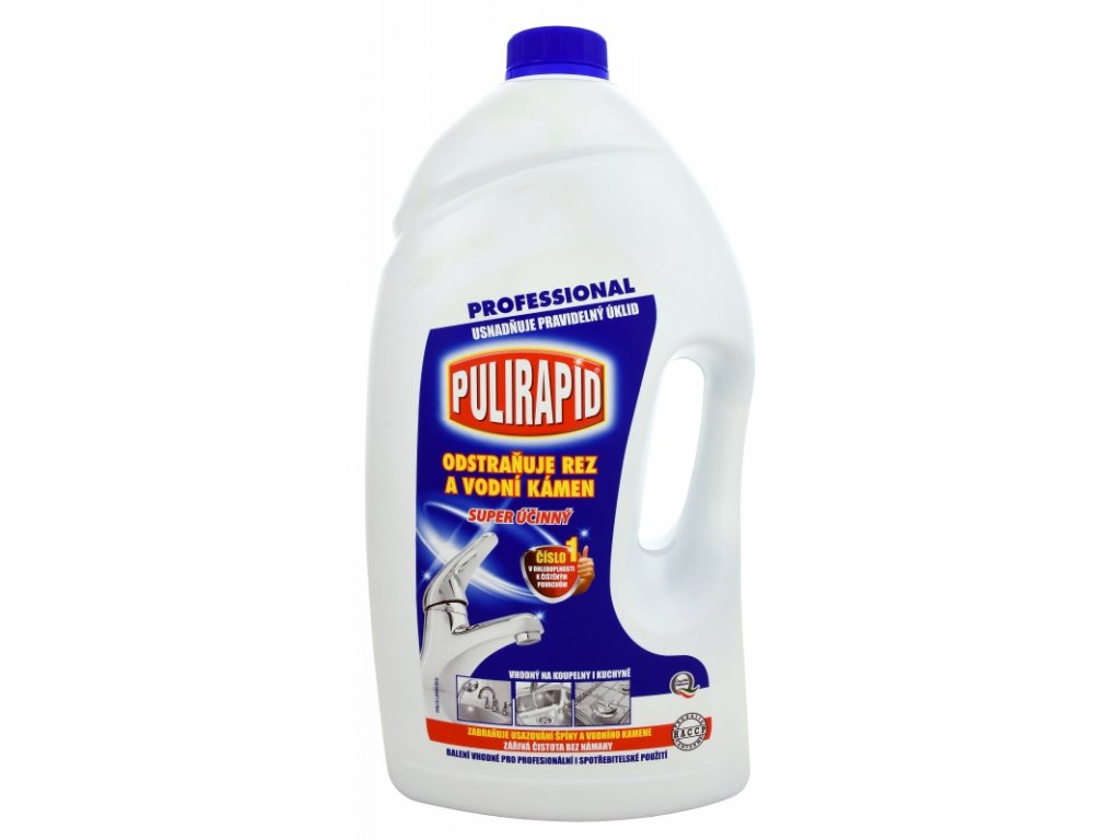Profesionální balení čističe pro kuchyně a koupelny Pulirapid. Nahrazen https://www.svetuklidu.cz/univerzalni-cistici-prostredky/io-splendo-anticalcare-5-l-odstranuje-rez-a-vodni-kamen/
